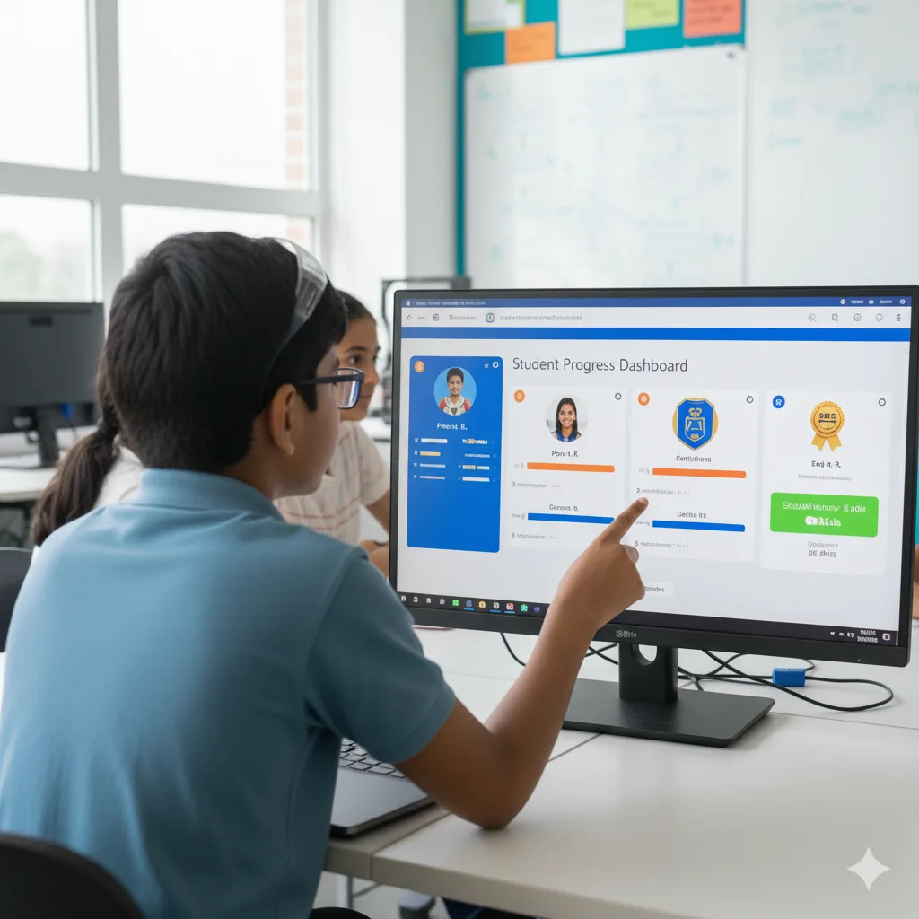 Quizzes, assignments, capstone presentations, competitions and events to track performance.